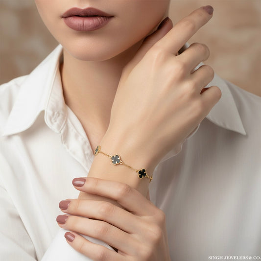 10K Yellow Gold Van cleef Inspired Clover Motif Bracelet