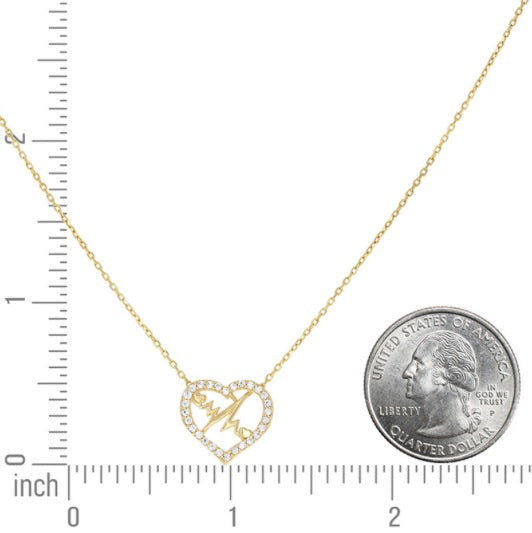 14k Yellow Gold Women's Cubic Zirconia Heartbeat in Heart Charm Necklace – 18" (16" + 2")