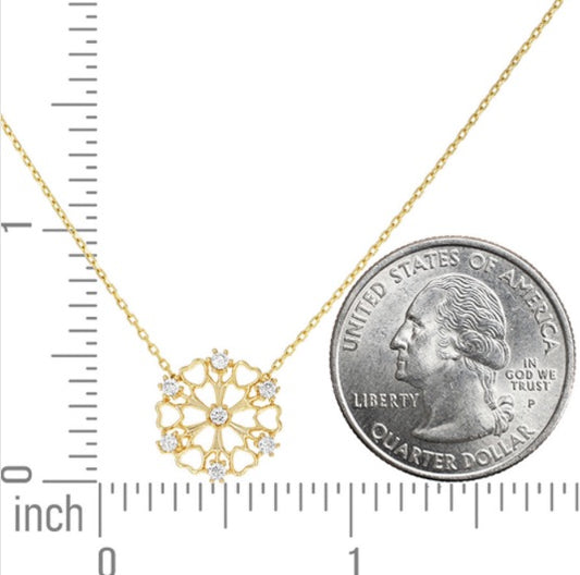 14k Yellow Gold Women’s Cubic Zirconia Flower Fashion Charm Necklace – 18" (16" + 2")