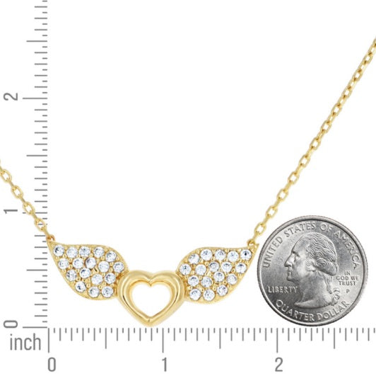 14k Yellow Gold Women's Cubic Zirconia Flying Heart Charm Necklace – 18" (16" + 2")
