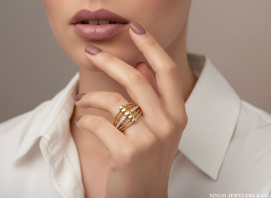 14K Gold CZ Layered Hearts Ring – Statement Ring