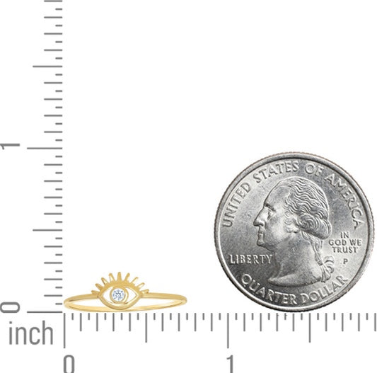14K Yellow Gold Women’s Cubic Zirconia Evil Eye Ring – Size 7, Good Luck Jewelry