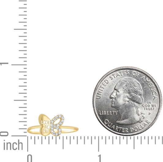 14k Yellow Gold LOVE Butterfly Ring with White Sapphires – Size 7