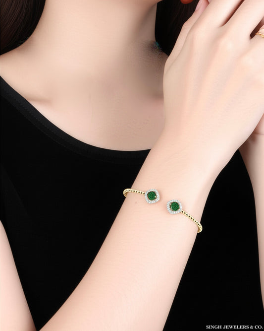 14K Gold Diamond & Emerald Bangle – 1/4 CTTW, 5mm Round Stones