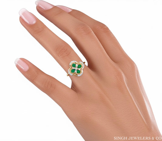 14K Gold Diamond & Emerald Clover Ring – 5/8 CTW