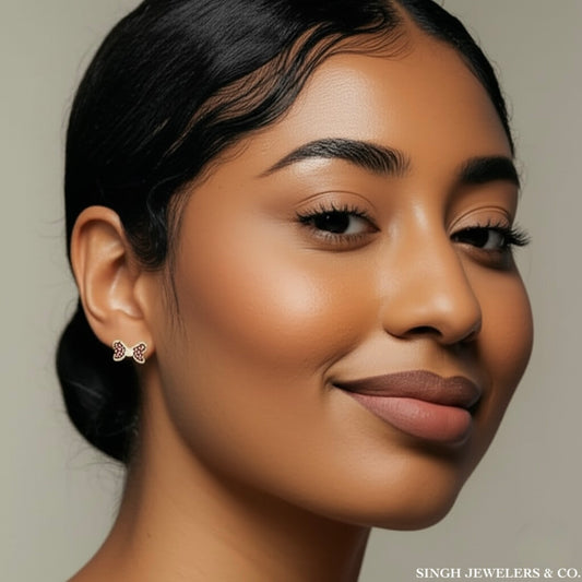 14K Gold Bow Earrings – Natural Ruby & Diamond, 1/4 CTW
