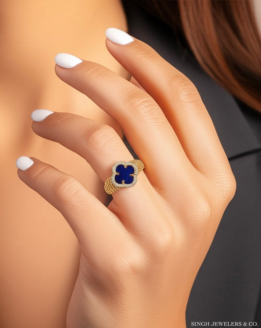 14K Gold Blue Clover Ring – CZ Lucky Charm Jewelry