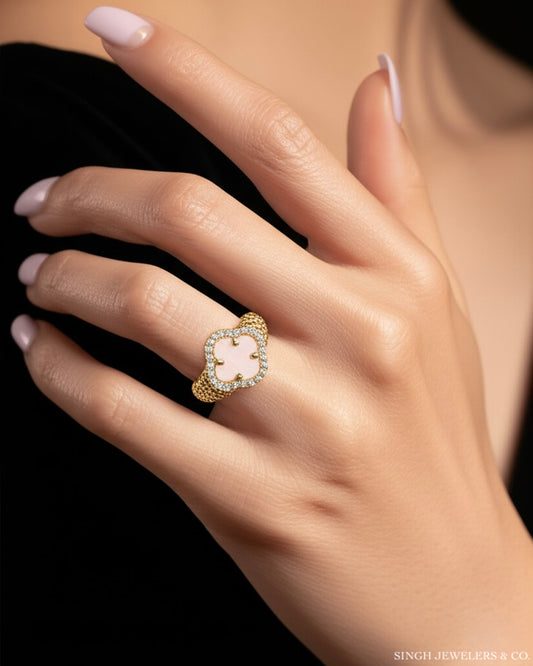 14K Gold White Clover CZ Ring – Elegant Gift Jewelry