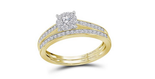 14K Slender Halo Round Diamond Bridal Wedding Set