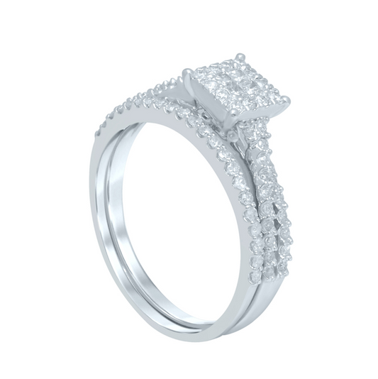 14k White Gold Princess Diamonds Bridal Certified Duo Ring Set