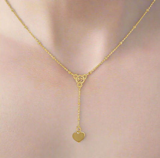 14K Yellow Gold 17.5 Inches Dangling Heart Necklace