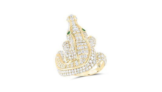 14k Yellow Gold 2 & 7/8 Cttw Diamond Crocodile Natural Emerald Gemstone Ladies Ring