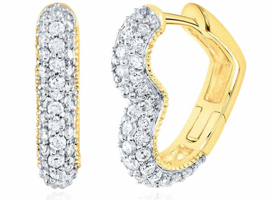 14k Yellow Gold 16mm Heart 3/4 Cttw Diamond Huggies Earrings