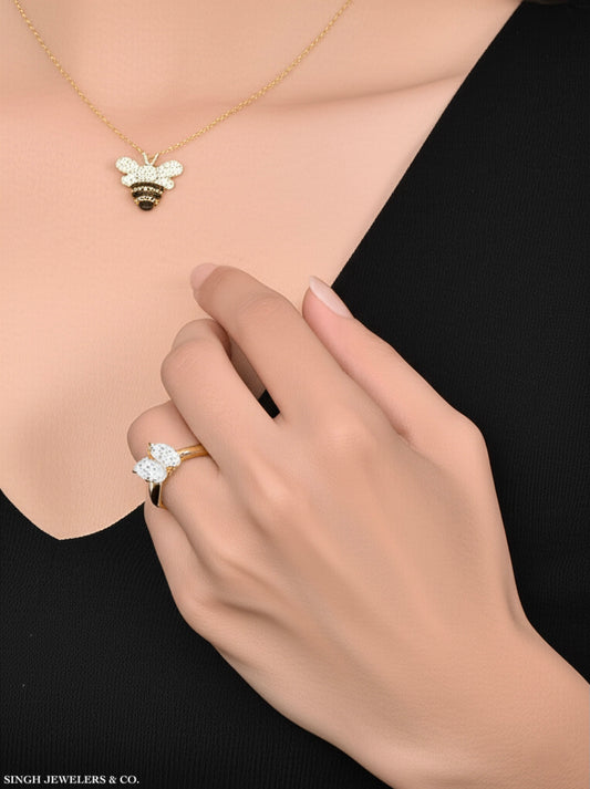 14K Yellow Gold 1/4CT Pear Oval Diamond Fashion Ring