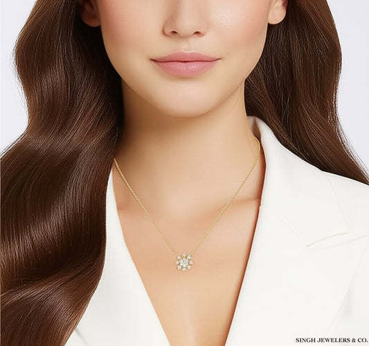 14k Yellow Gold Flower Necklace – Nicolina Design, 1/3 CTTW Round Diamonds, 18 Inches