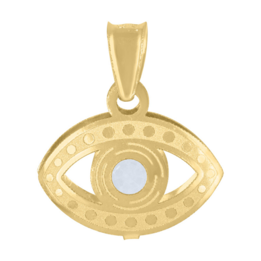 14k Yellow Gold Evil Eye Good Luck White Sapphire Charm