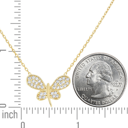 14k Yellow Gold Dragonfly Cz Necklace 18" (16"+2")