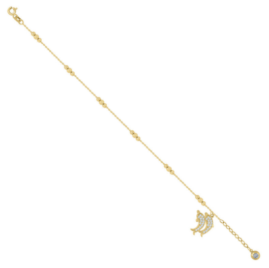 14K Yellow Gold Diving Dolphins Beaded Bracelet