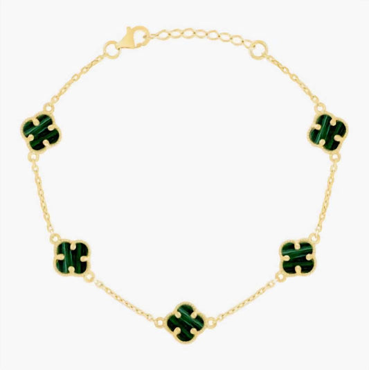 14k Yellow Gold Green Clover Bracelet, 7.5” Adjustable
