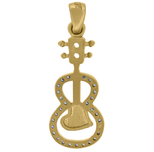 14K Yellow Gold Guitar Pendant with White Sapphires – Music Charm Necklace (No Chain Included)