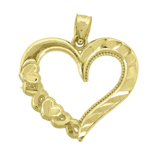 14k Yellow Gold Hugs & Kisses Diamond Cut Heart Charm