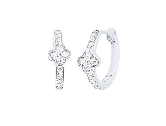10k Clover Diamond Hoop Earrings – 1/10 Cttw, Classic & Elegant