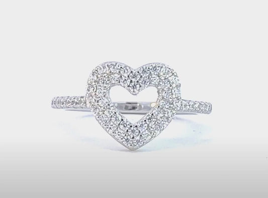 Sterling Silver White Sapphires Open Heart Ring