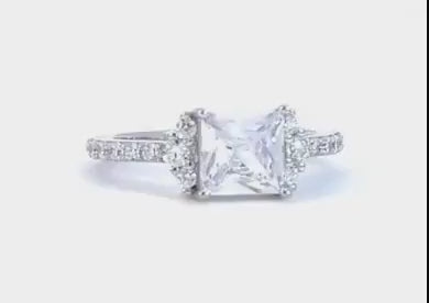 Sterling Silver White Sapphires Princess Cut Ring