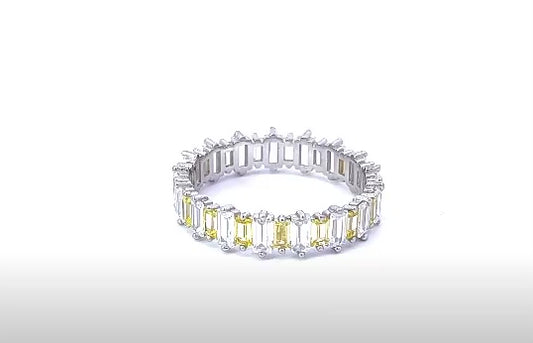 Sterling Silver Yellow White Baguette Cubic Zirconias Fashion Eternity Band
