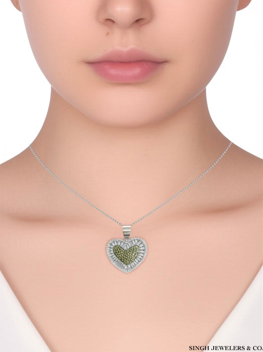 Sterling Silver Yellow & Lime CZ Heart Charm