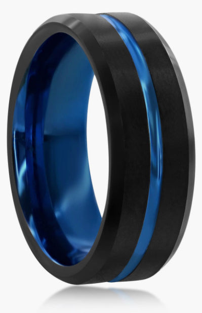Tungsten Blue and Black Wedding Band – Men's Ring Size 15