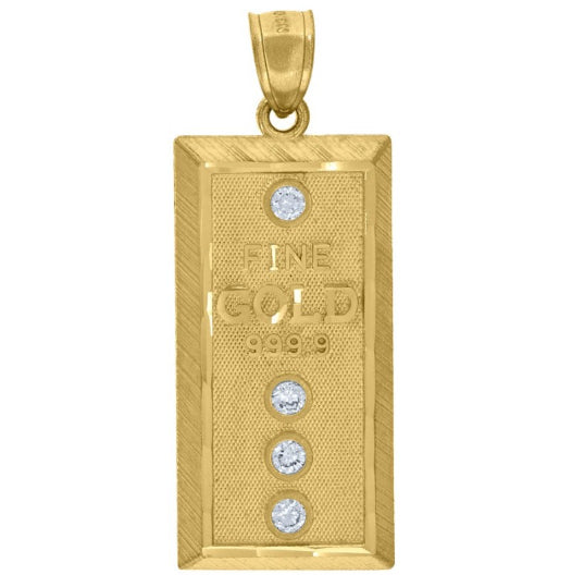 10k Gold 999.9 Bar Charm with White Sapphires – Pendant Only