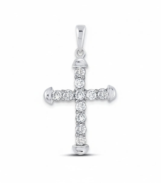 10K Gold Diamond Cross Pendant – 5/8 CTW Baguette & Round Diamonds