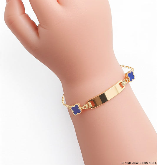 10K Gold Clover ID Bracelet – Baby Blue, 5.5" Adjustable