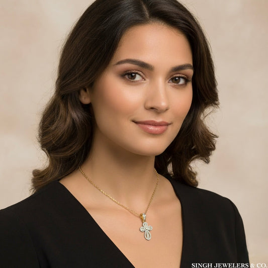 10K Gold Cross Pendant with 1/5 Carat Diamonds