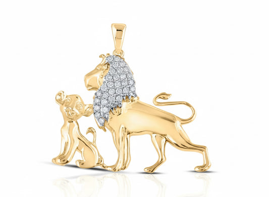 10K Gold Diamond Pendant Set – Baby Kiara & Lion King Simba, 1/5 CTTW