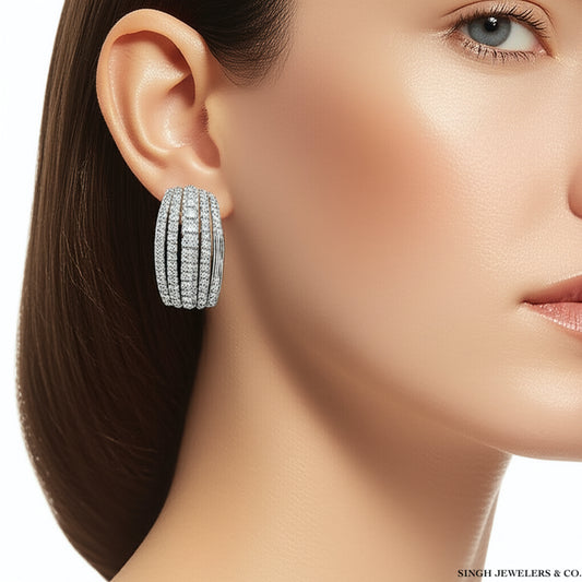 10K Gold Diamond Hoop Earrings for Women – 1.00 CT Round Stones
