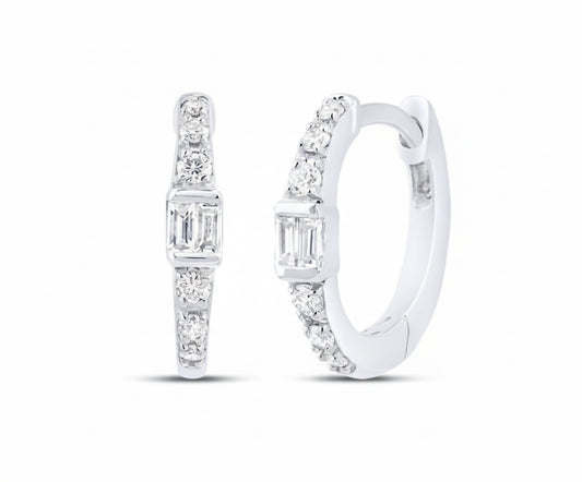10K Gold Diamond Hoop Earrings – Princess Cut Center, 1/8 CTTW