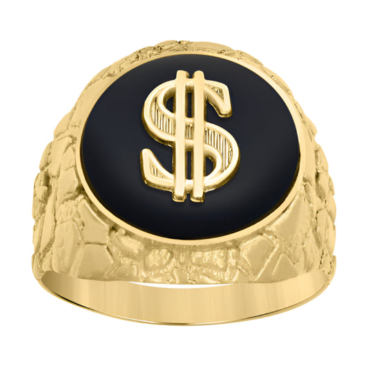 10K Gold Dollar Sign Nugget Ring with Black Enamel – Size 10