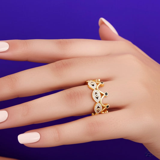 10K Good Luck Evil Eye Crown Ring – Black & Blue Enamel with Cubic Zirconias