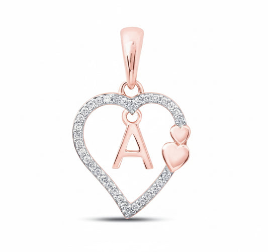 10k Gold “A” Heart Letter Pendant – 1/10 CTTW Round Diamonds