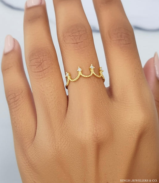 10K Gold Tiara Ring with White Sapphires Crown