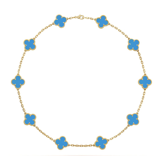 10K Gold Sky Blue Clover Pendant Necklace