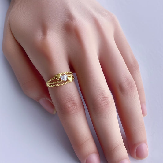 10K Gold Triple Heart Ring, Size 7