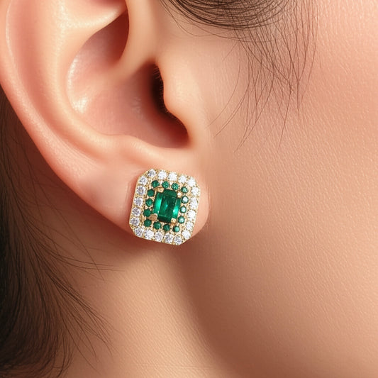 1/4CTW Diamond & 1/8CTW Emerald 4x3mm Stud Earrings | Natural Gemstone
