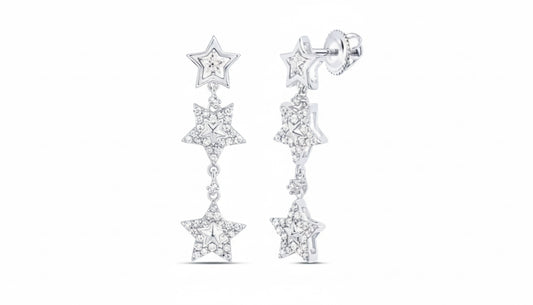 1/4CTW Natural Diamond Star Dangling Earrings - 10k Gold