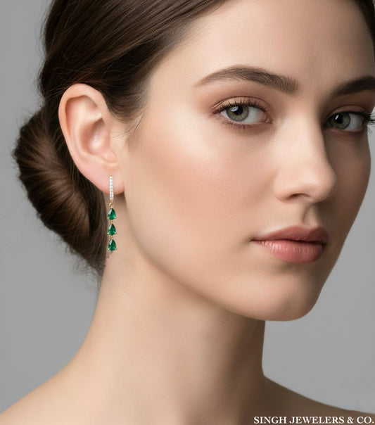 1/5 CTW Diamond & Emerald Dangling Earrings in 14k Yellow Gold