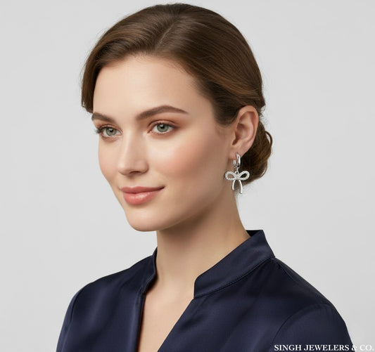 1/5CTW Diamond Sterling Silver Bow Dangling Earrings