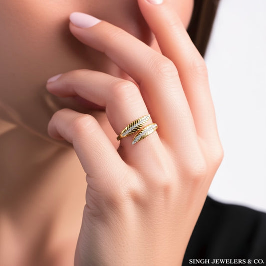 1/8 CTW Diamond Leaf Ring in 14k Yellow Gold | Perfect Gift