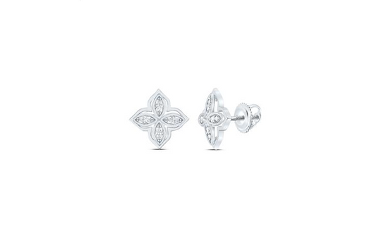 10k Round 1/10 Cttw Diamonds Flower Studs